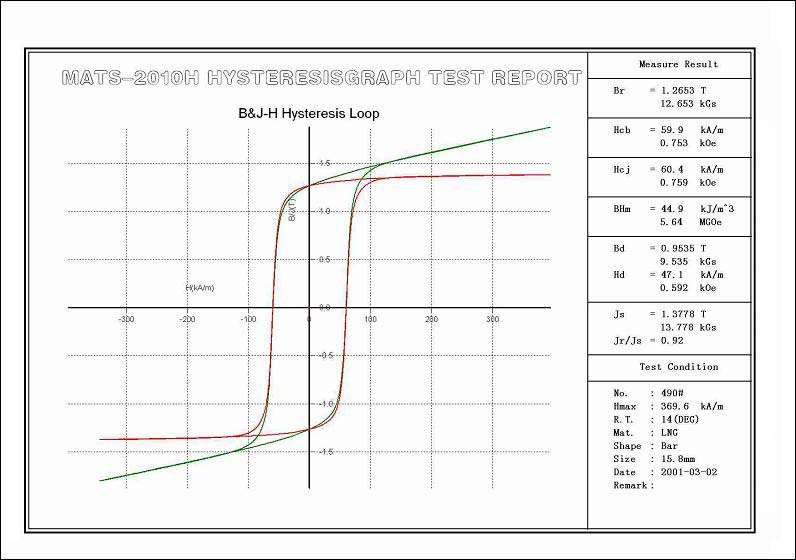 Automatic measurement on hysteresis loop and demagnetization curve of permanent-magnet material, accurate measurement on magnetic characteristic parameters such as remanence Br, coercive force HcB, intrinsic coercive force HcJ and maximum magnetic energy product (BH)max.
